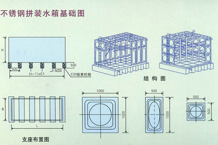 2、此種水箱按規(guī)范SS177設(shè)計(jì),材質(zhì)為SUS304,耐腐蝕性強(qiáng)、抗震性能好、便于運(yùn)輸、無(wú)需大型吊裝設(shè)備.不同容積均可現(xiàn)場(chǎng)組裝。